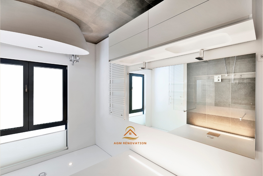 Découvrez nos projets de rénovation de salles de bain, où design moderne et praticité se rencontrent. Des espaces optimisés pour allier bien-être et esthétisme.